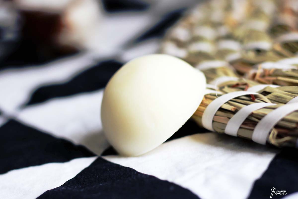 A l’ouverture, la boîte dégageait un magnifique parfum… je l’ai déballé entièrement pour savoir d’où ça venait, jusqu’à ce que je tombe sur ce petit dôme tout mignon parfumé à la Fleur de Tiaré. Il s’agit en fait d’une bougie artisanale naturelle en cire de soja que l’on place soit dans un diffuseur en terre cuite pour le laisser fondre et s’évader quelques heures sur les îles, soit que l’on place dans nos placards pour embaumer tous nos vêtements. Évasion garantie.