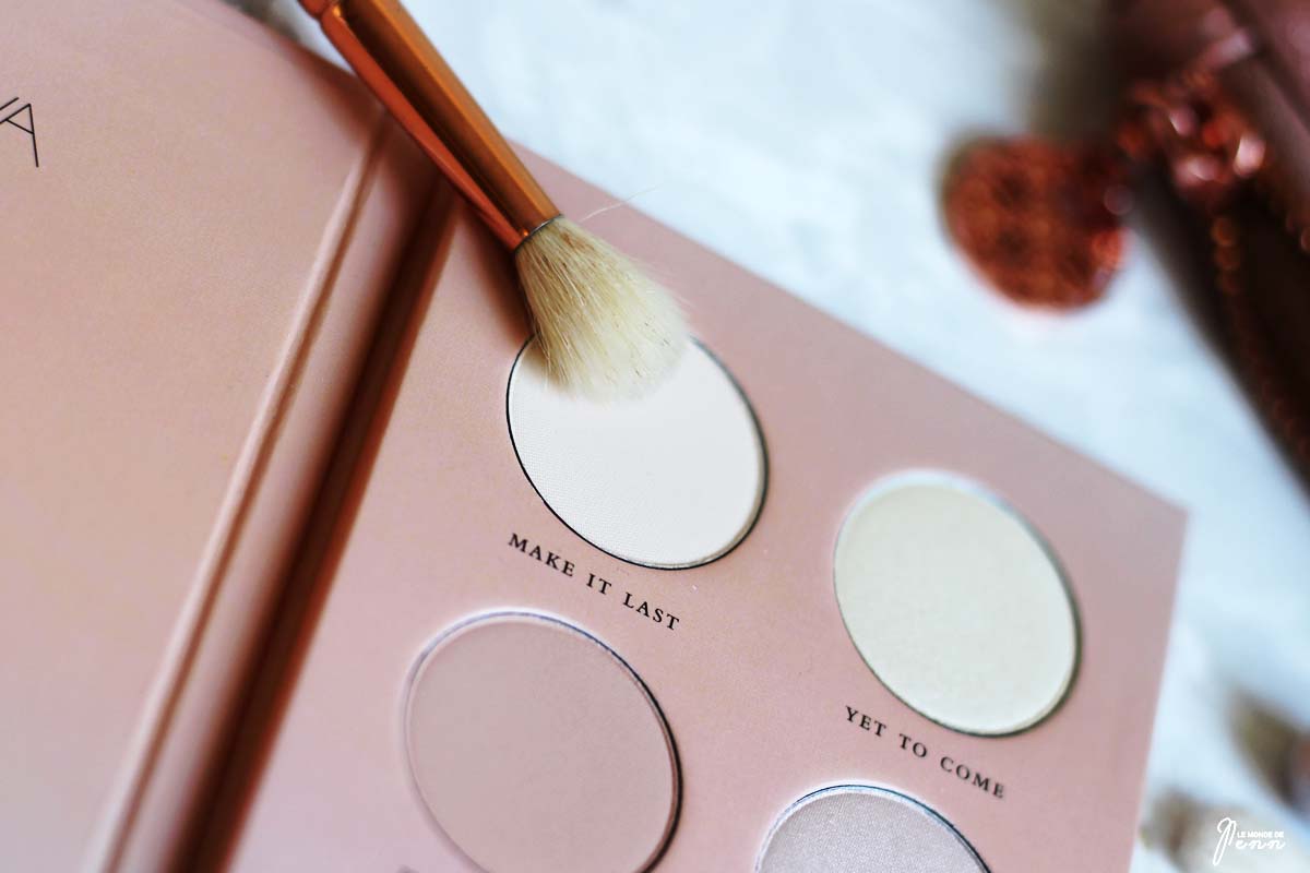Cette palette est douce et complète, avec de sublimes teintes qui ne se voient quasiment pas. Elles sont faiblement pigmentées. Seule Make It Last est très très intense et quelque peu poudreuse. Il est vrai et bon de noter que les ombres sont peu poudreuses même si par habitude, je tapote toujours mon pinceau avant de déposer la matière. Noter également que tout n’est pas négatif, les fards se travaillent très bien et se fondent parfaitement entre eux.