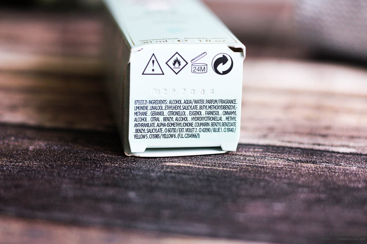 Ce qui est hautement appréciable finalement avec ces Eaux de Cologne revisitées, c’est que leur composition est jusqu’à 90% d’origine naturelle. Ce détail peut en séduire plus d’une ! En ce qui concerne Cassis Frénésie, nous sommes à 90.1% d’ingrédients naturels. Bon par contre, je ne sais pas où figurent tous les extraits annoncés dans la composition. Probablement dans l’ingrédient parfum.