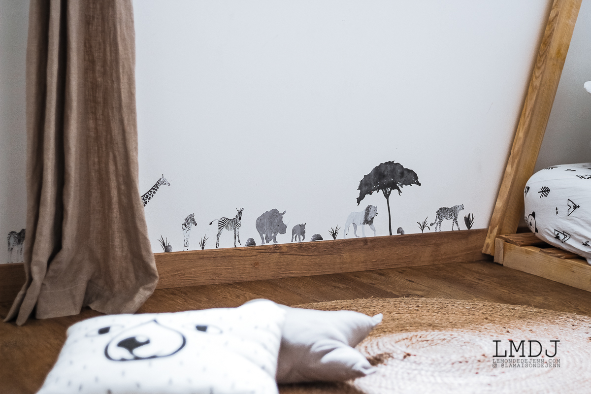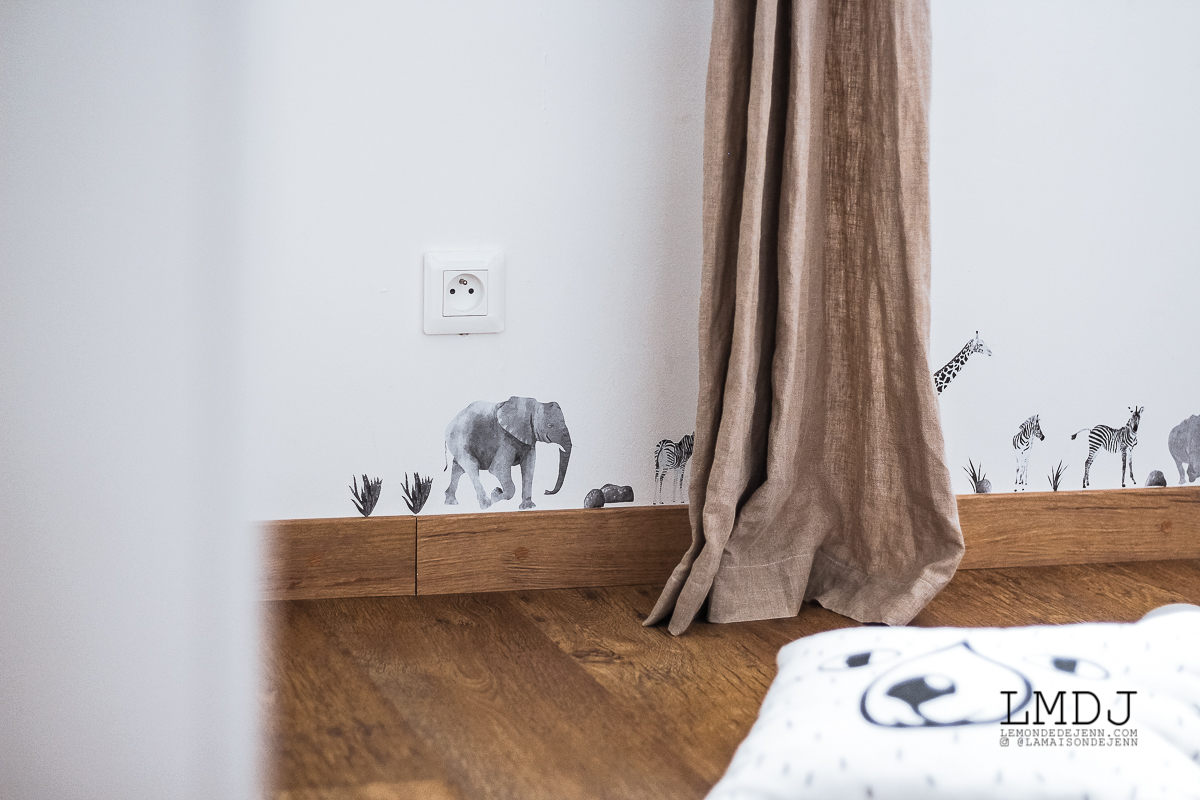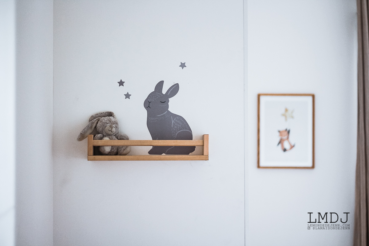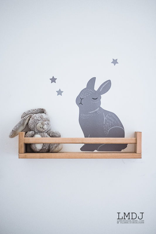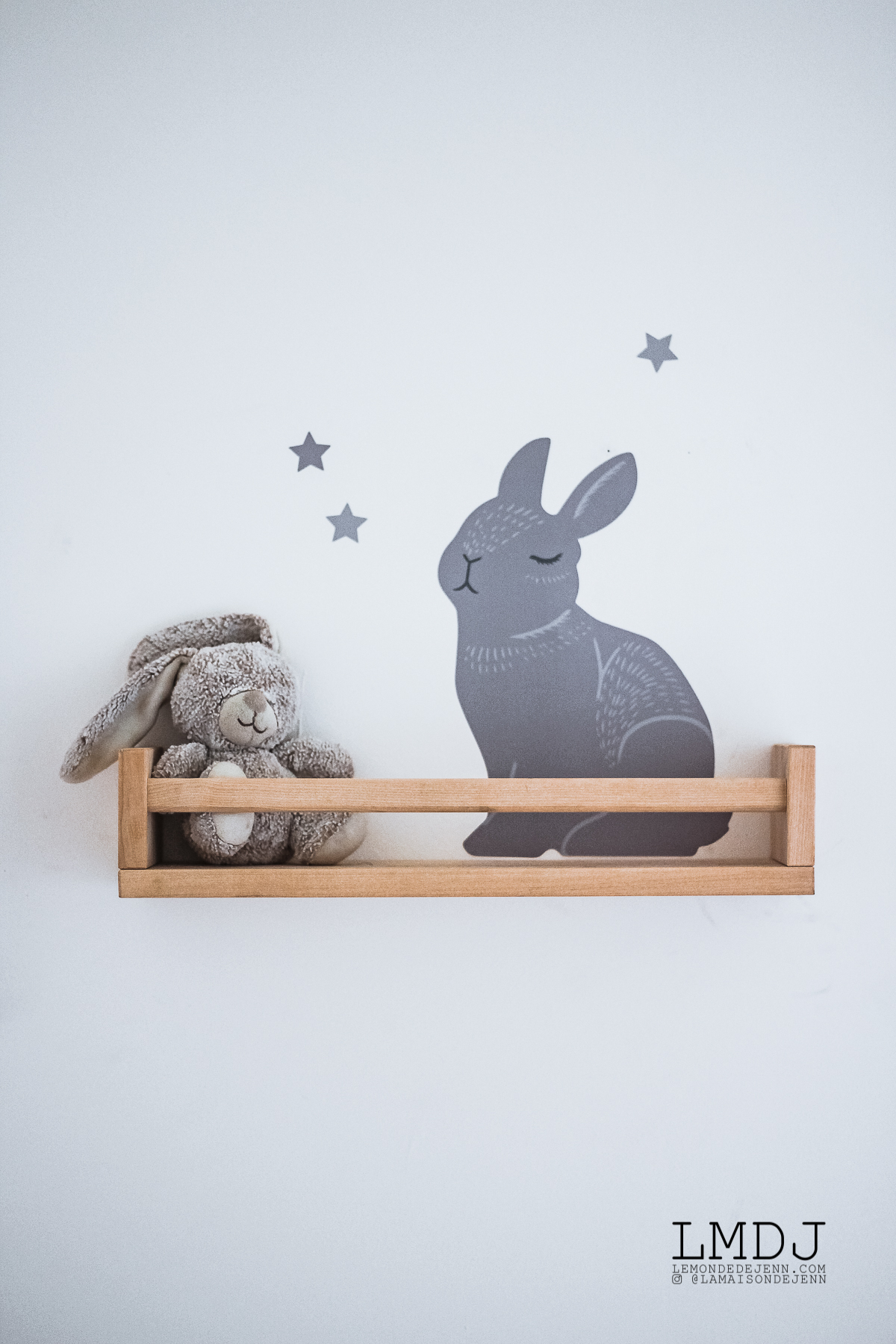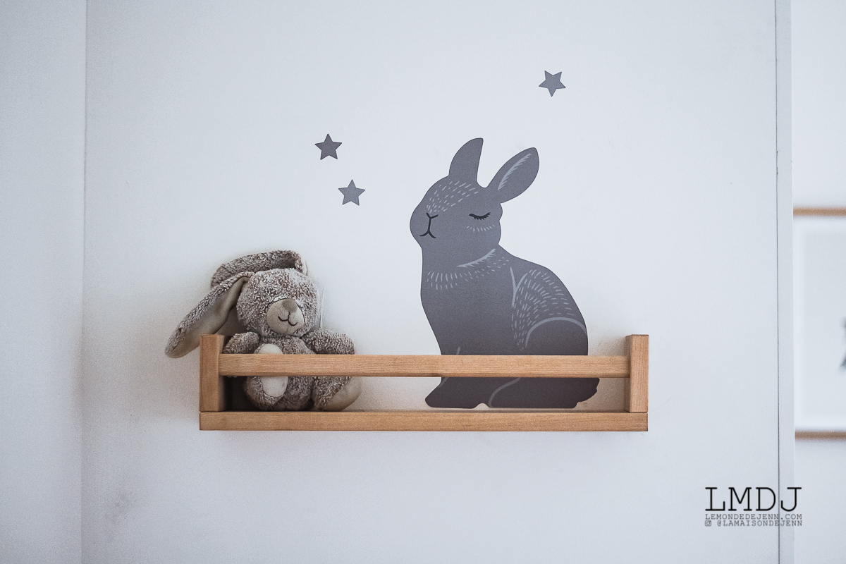 J’ai donc reçu plusieurs planches de stickers (Stickers lapins coloris taupe, Stickers animaux sauvages) et je vous ai montré sur instagram (que vous pouvez retrouver dans mes stories à la Une Lilipinso) comment je les ai posé. Je vous propose donc désormais de découvrir le résultat, dans les chambres de mes enfants.