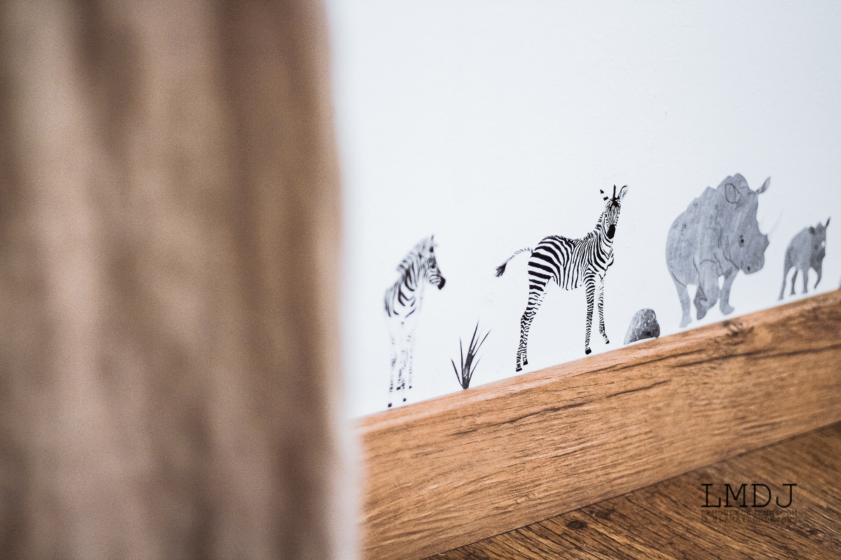 Voilà bientôt 9 mois que nous sommes dans la maison et… rien n’est fini nul part (ou presque). Aujourd’hui, les chambres des enfants étaient à l’honneur. J’essaie de leur créer un univers forêt/animaux/nature et je dois dire que jusqu’à maintenant, ce que nous avons fait me plaît bien. Et la pose des stickers Lilipinso y contribue beaucoup je crois.