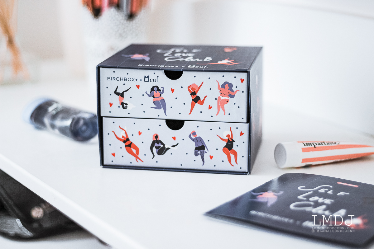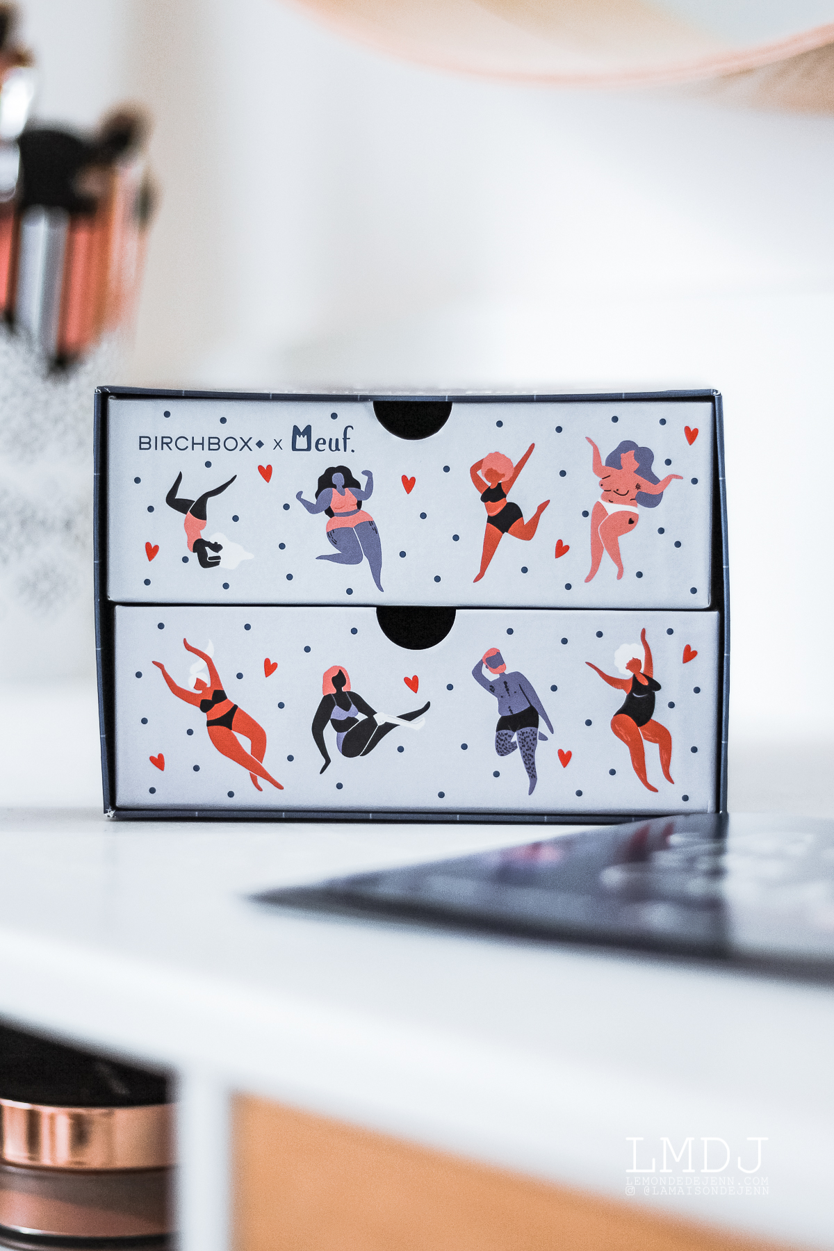 Je l’attendais avec impatience après avoir aperçu son design dans la newsletter Birchbox : la box du mois de Mars, en collaboration avec Meuf Paris, offre un magnifique design avec une boite 2 tiroirs et des illustrations féminines et canons.