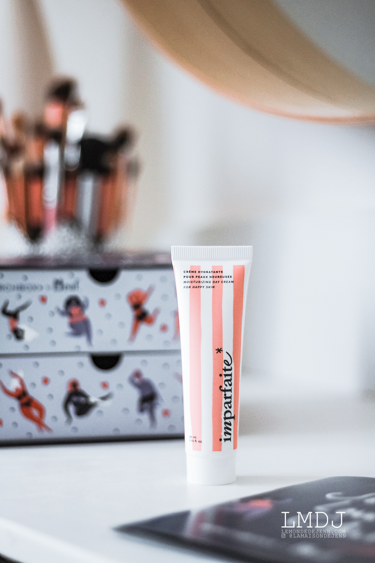 On termine la découverte des produits de notre box du mois de Mars avec un soin visage : la Crème hydratante pour peaux heureuses Imparfaite. Cette crème visage, composée à 96 % d’ingrédients d’origine naturelle va offrir une belle dose d’hydratation à la peau. Sa texture légère et non grasse laisse la peau douce, hydratée et protégée des agressions extérieures.
