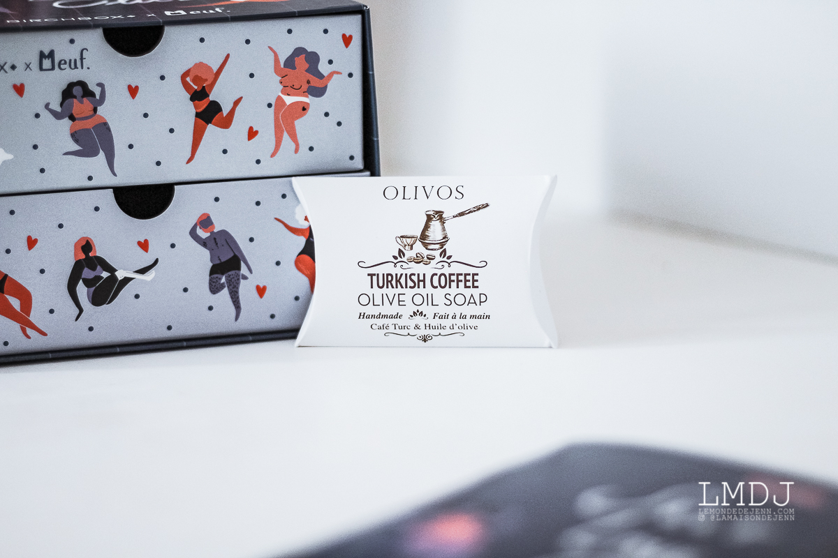 Même si j’ai toujours un peu de mal avec les savons solides qui ne conviennent pas à ma peau, je vais découvrir cette version que nous propose Birchbox : le savon à l’huile d’olive et café turc d’Olivos. Fabriqué de manière artisanale et emballé à la main (formulé sans paraben et sans huile de palme), ce savon, du fait de la présence de café, va contribuer au ralentissement du vieillissement de la peau, réduire les varices et éliminer les peaux mortes.