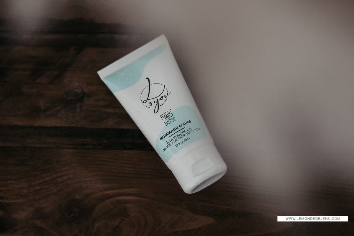 C’est loin d’être un soin que je fais régulièrement et pourtant, j’aime bien le gommage des mains. Ce mois-ci, nous avons celui à la poudre de noix de coco de L&You dans notre coffret (produit réservé aux abonnées). Ce soin exfoliant débarrasse la peau des peaux mortes et laisse les mains douces, soyeuses et délicatement parfumées.