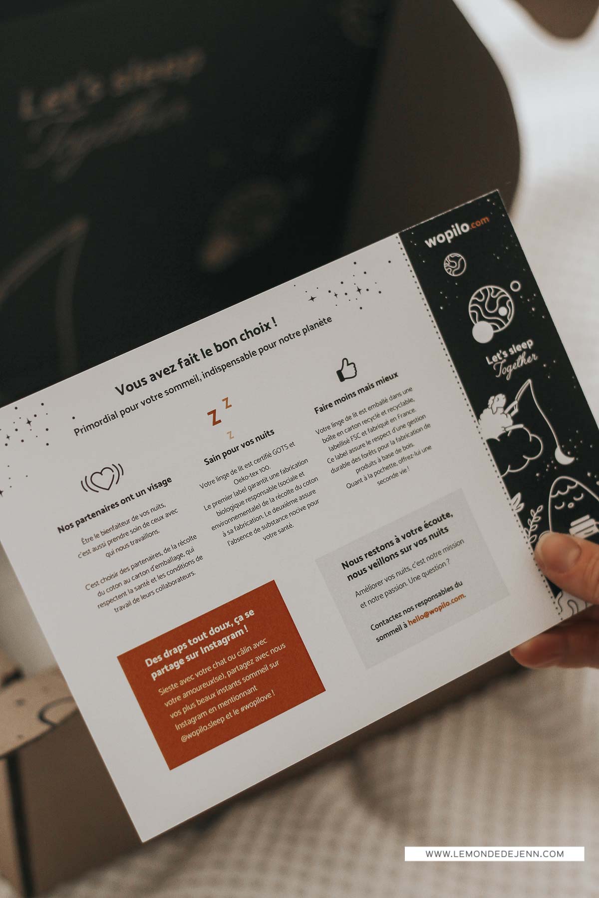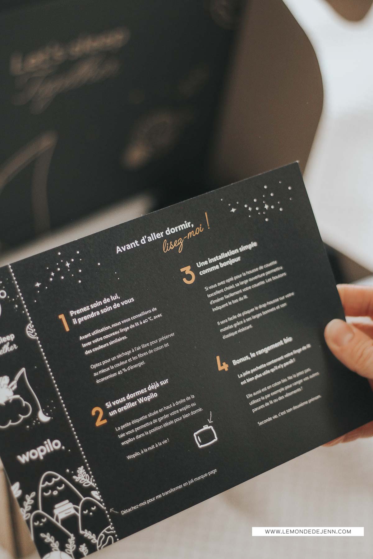 J’ai un oreiller Wopilo à la maison, je dors super bien dessus, il est idéal pour moi car les gros oreillers ne me permettaient pas un bon maintien sous le cou (je dors exclusivement sur le côté). 🙂 La housse de couette a l’air super chouette niveau fermeture vers le bas, les nôtres ont la petite entrée réduite et je déteste ça car c’est hyper compliqué de mettre la couette à l’intérieur !