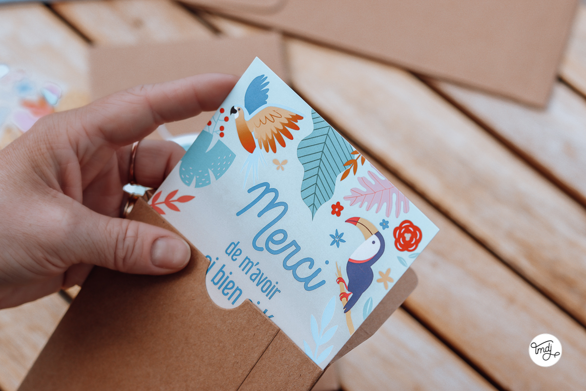 • Le tout est glissé dans une jolie enveloppe cartonnée kraft, à fermeture japonaise prête à offrir !