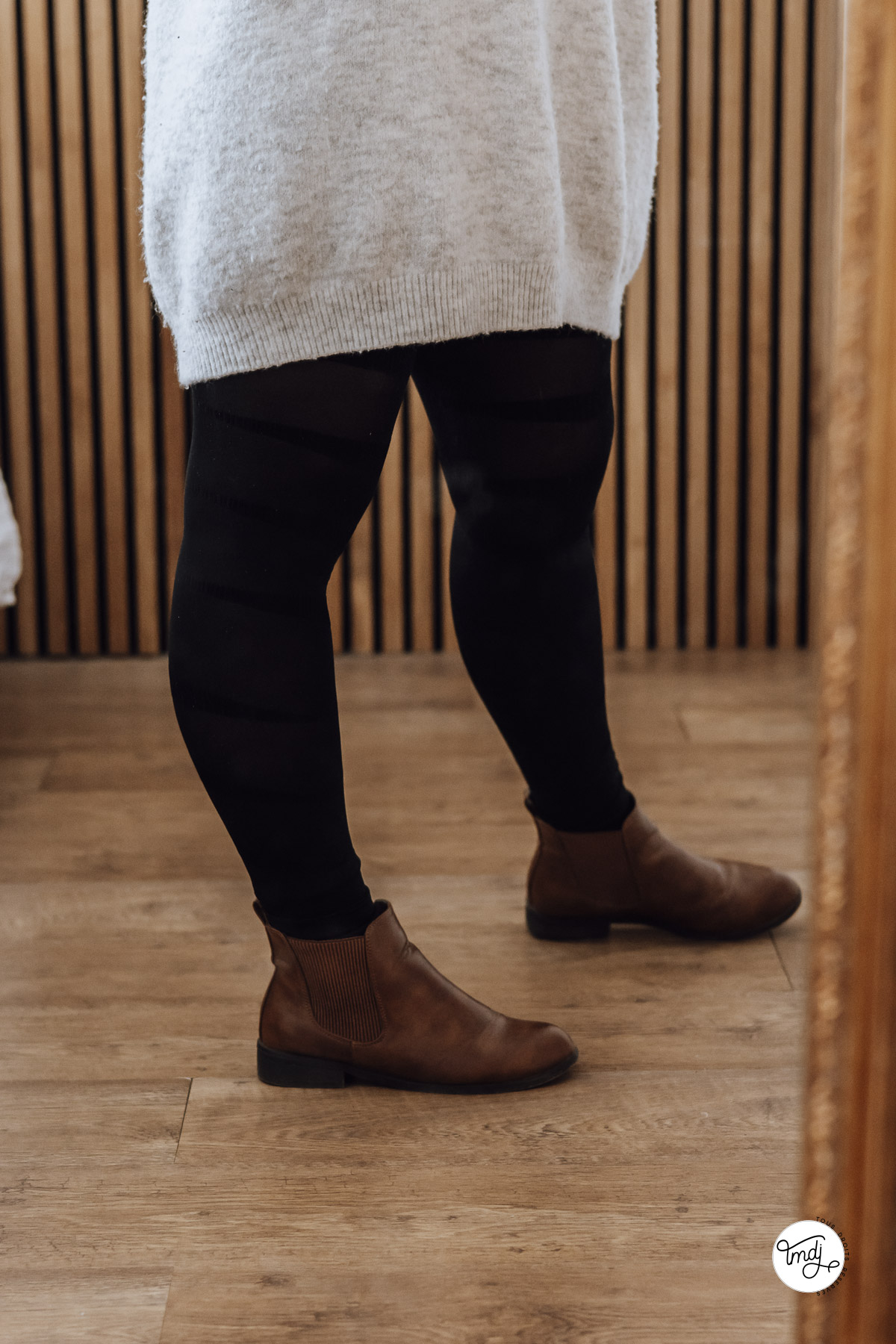 Il est agréable à porter, que ce soit avec une robe/jupe ou sous un jean. Le seul bémol pour moi, c’est que, comme c’est le cas pour la plupart des collants, la bande au niveau du ventre s’enroule sur elle-même, il faut donc régulièrement la dérouler et la remonter. Ce n’est pas pour autant qu’il écrase le ventre : il ne nous empêche pas de respirer.