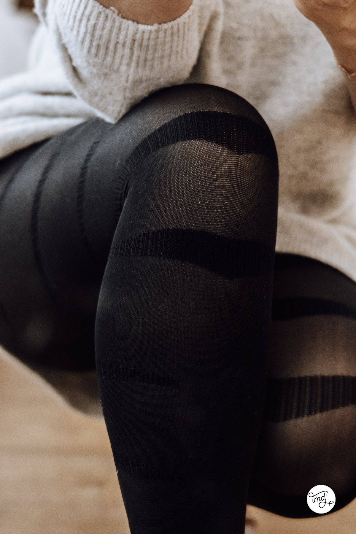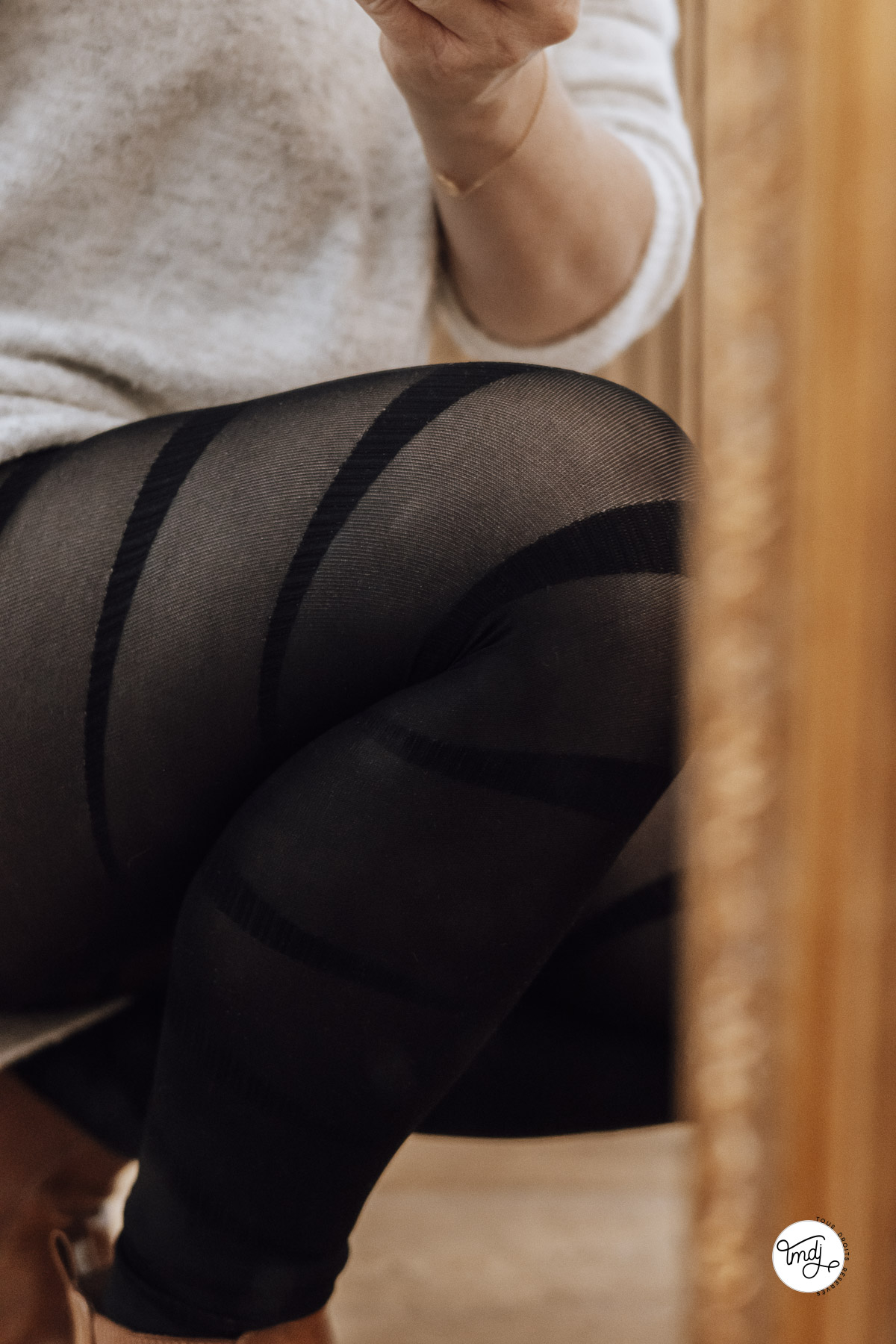 Il ne nous bloque pas non plus dans nos mouvements. Ça ne change rien à notre quotidien. Le collant épouse parfaitement les formes du corps, les rend un peu plus jolies que ce qu’on veut voir (nous, dans notre tête), on reste libre de nos faits et gestes, on ne le sent pas, on l’oublie totalement !