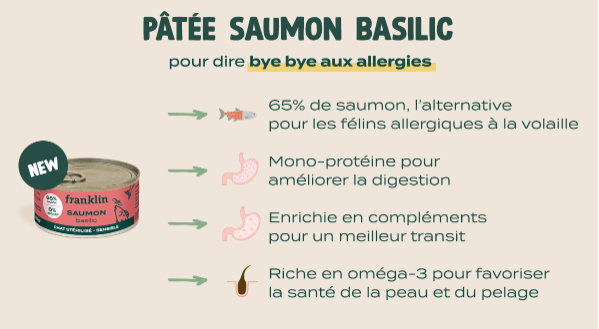 Allergies alimentaires, intolérances, surpoids ? Franklin met la pâtée aux petits tracas de votre chat ! Au menu : des pâtées mono-protéine pour soulager les grands sensibles ou se réconcilier avec la balance.
