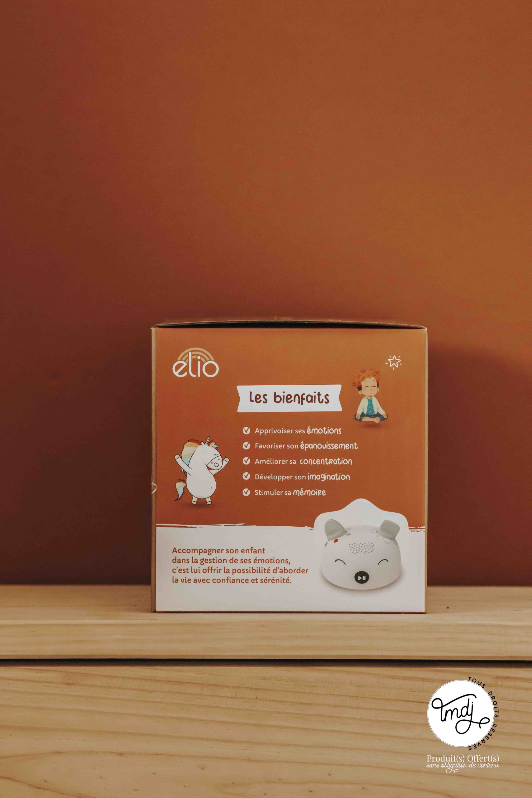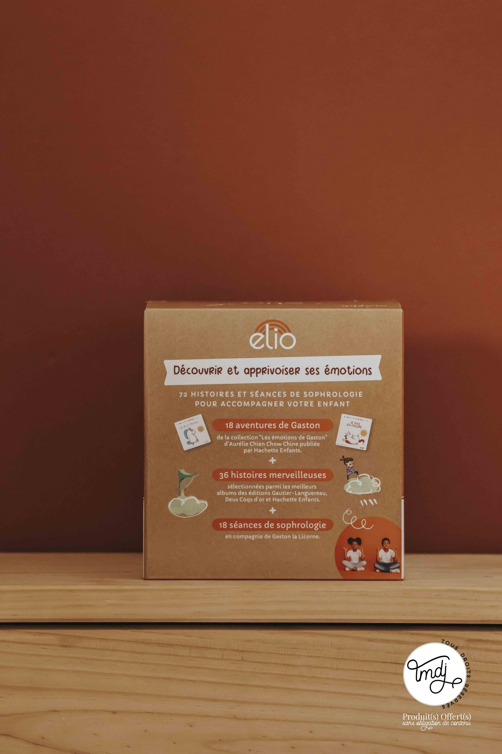 Les boites à histoires contiennent des histoires divertissantes pour les enfants. Elio contient des histoires autour des émotions et des séances de sophrologie adaptées aux enfants. Ces séances invitent à réaliser des exercices de respiration et de visualisation afin d’identifier, d’accueillir et de mieux gérer ses émotions.