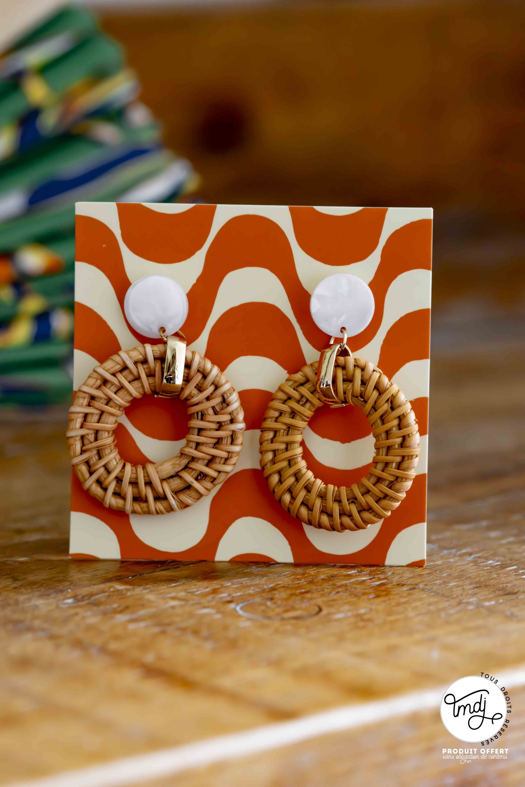Pour sublimer votre visage et ajouter une note de fantaisie à n’importe quelle tenue estivale, des boucles d’oreilles tressées, en rotin, sont également incluses dans la box. Ces bijoux apportent une touche d’élégance et de charme qui saura capter tous les regards.