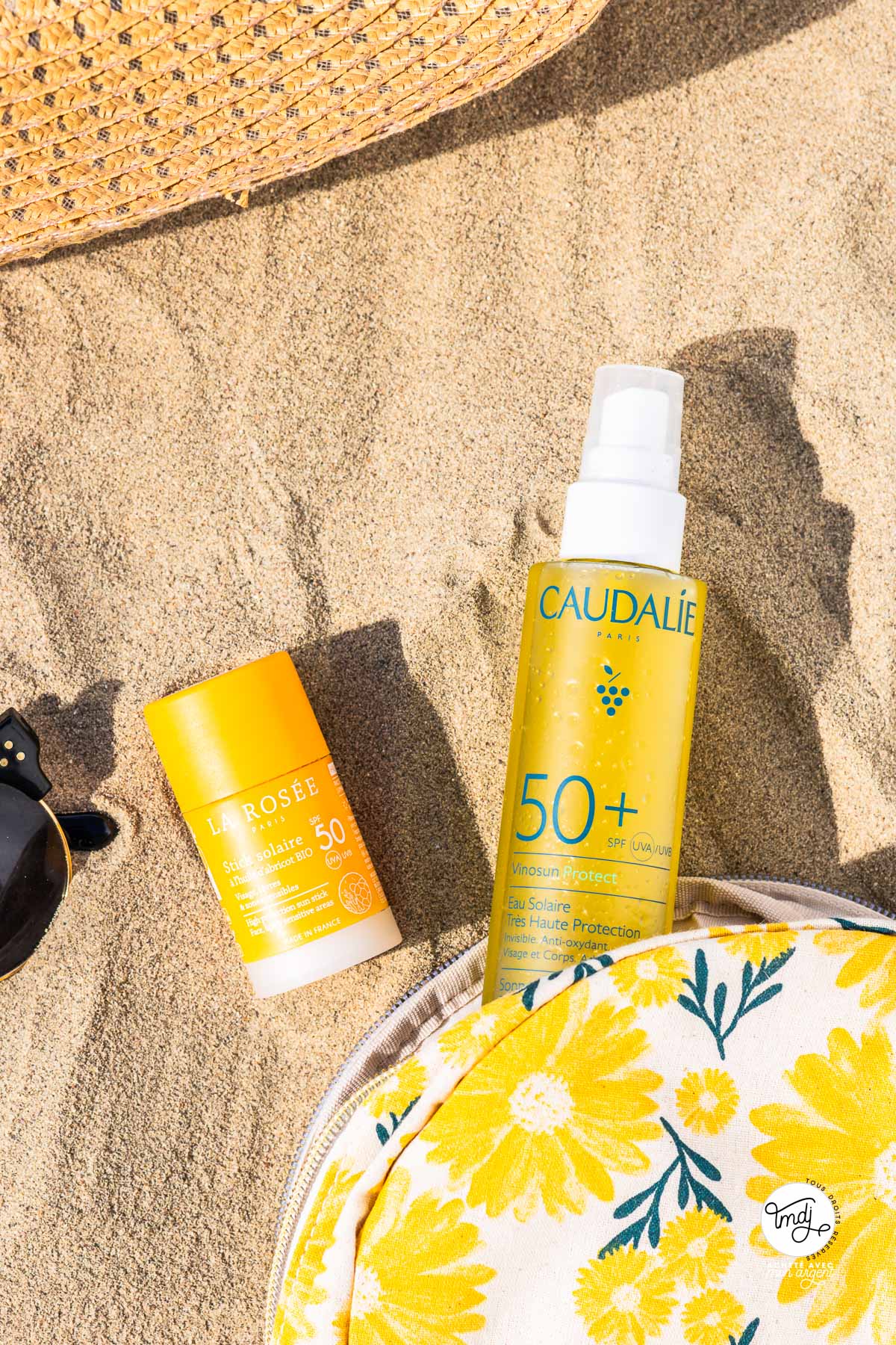 Eau solaire SPF 50 + Vinosun Protect – Visage, corps et cheveux – Caudalie – 150 ml – 16,90 € / Stick solaire SPF 50 – La Rosée – visage et corps – 18 gr – 13,50 € // Produits achetés par mes soins avec mon argent - Liens non affiliés.