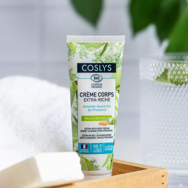 • Crème corps onctueuse riche, Coslys, 75 ml – 6,50 €.