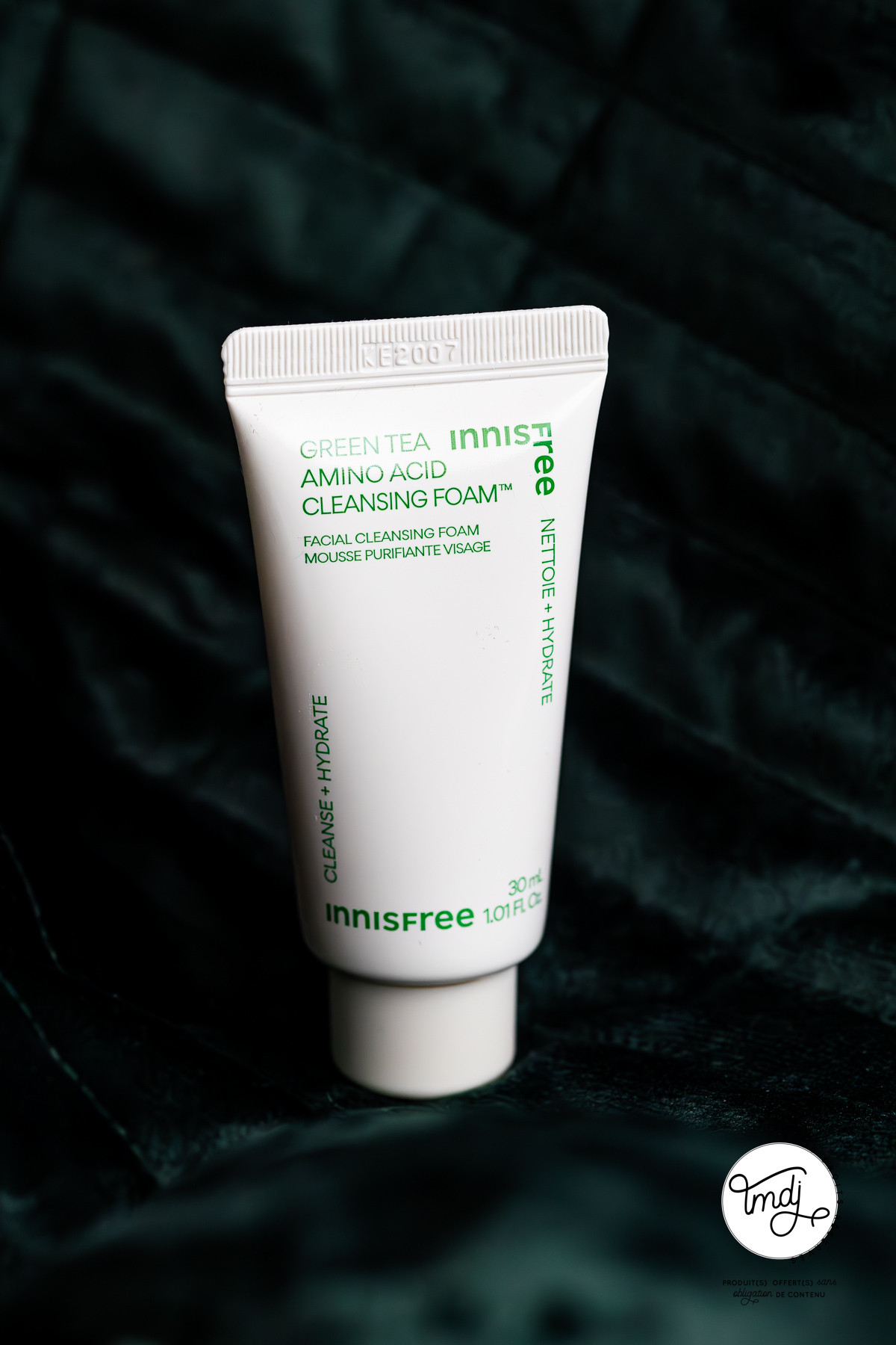 - Mousse nettoyante au thé vert et aux acides aminées – Innisfree – 30 ml – 3,60 €,