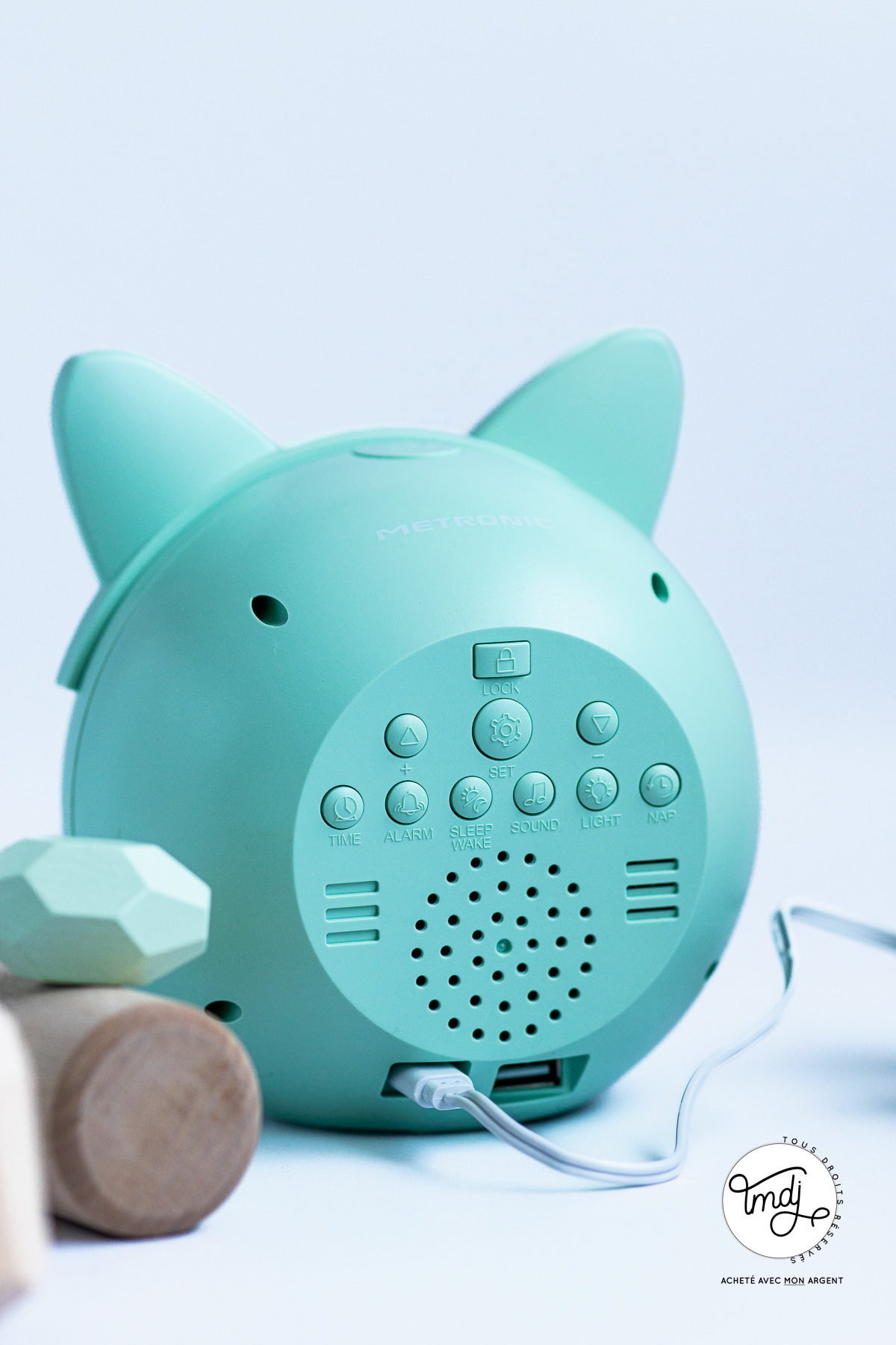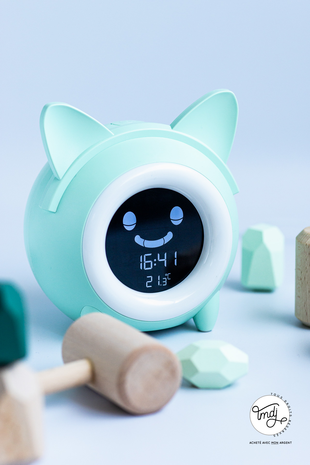 Depuis, nous testons un autre modèle (que j’ai encore acheté avec mes sous). Pour l’instant, tout semble fonctionner correctement 🤪. Il s’agit du Metronic Réveil Mady éducatif.