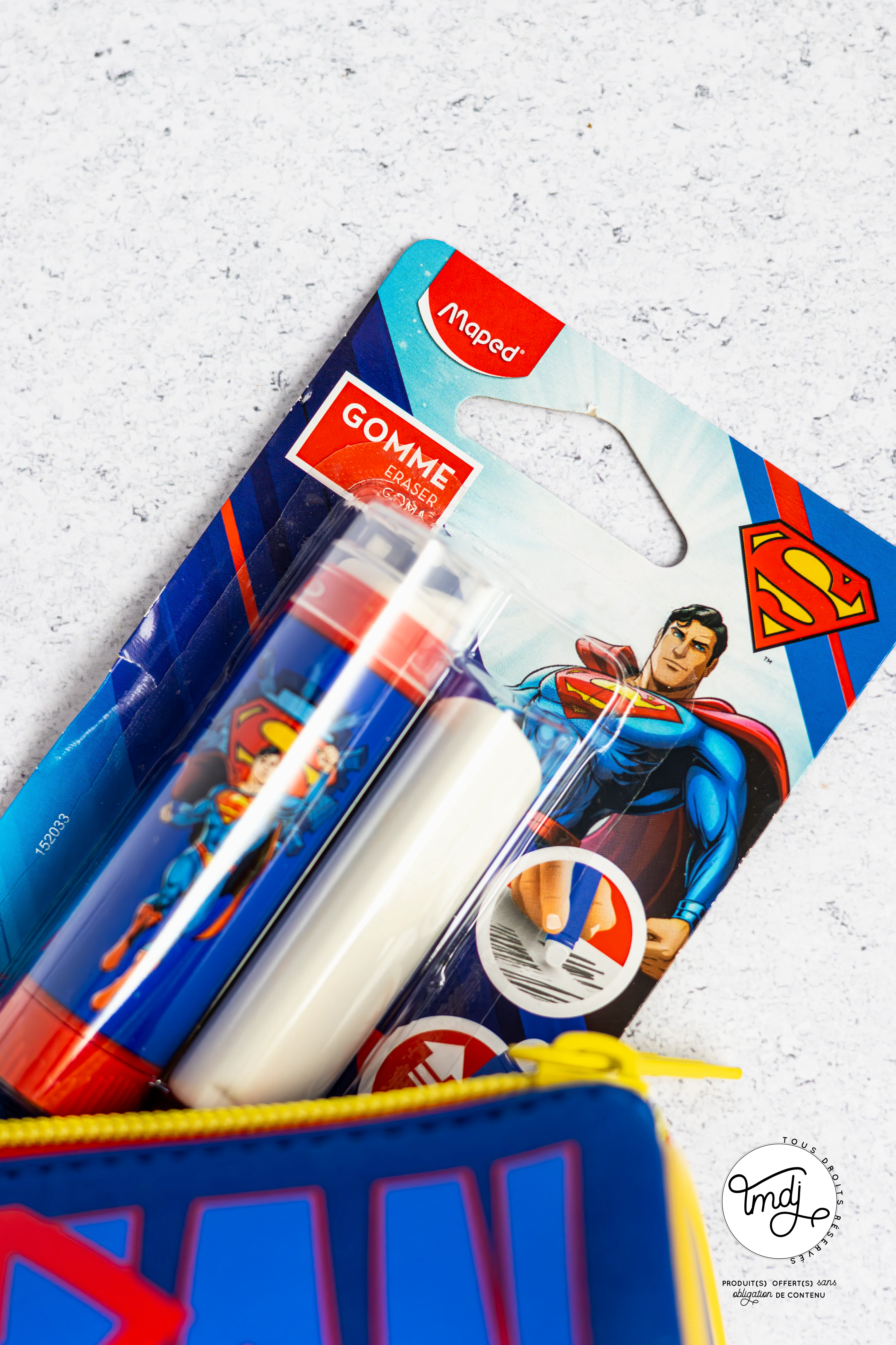 Je ne sais pas si c’est l’effet cape rouge ou le bleu profond du logo, mais cette collection m’évoque une certaine forme de courage tranquille – celui dont on a tous un peu besoin au moment de franchir les portes de la rentrée. Elle combine tout ce qu’un enfant attend de ses fournitures : un style affirmé, un univers familier et rassurant, une praticité bien pensée. Mention spéciale pour la gomme tube (mon petit coup de cœur, vraiment) : elle reste propre quoi qu’il arrive – même au fond d’une trousse pleine de copeaux, d’encre ou de miettes de papier.